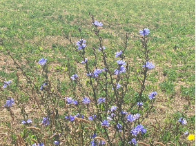 On these higher walks, there is little shelter other than, as Brendan found, among the wild grasses and crops. The grassland is parched a dusty yellow, the sky blue and deep, the palette of Cezanne. We could not stay out long but we both had fun; I noticed things while he charged in crazy circles through the long grass.